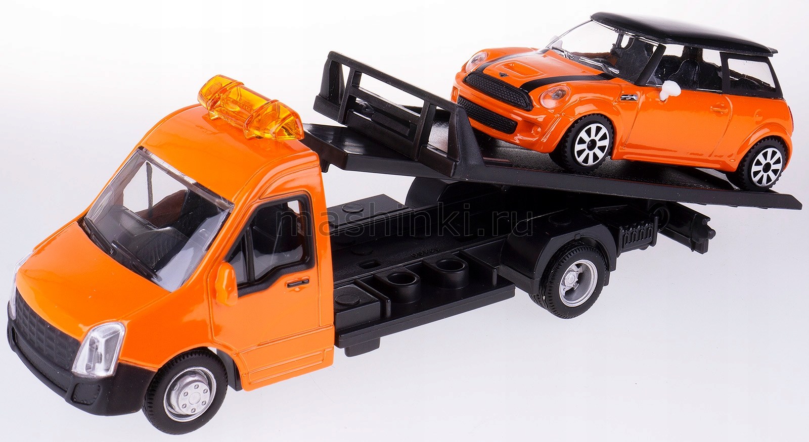 BBURAGO 1/43 Эвакуатор + машина STR Fire Flatbed Transport orange/оранжевый