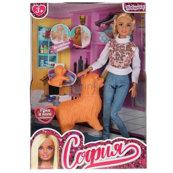 Кукла СОФИЯ в машине 29 см руки, ноги сгиб. (магнитные собака и щенок)