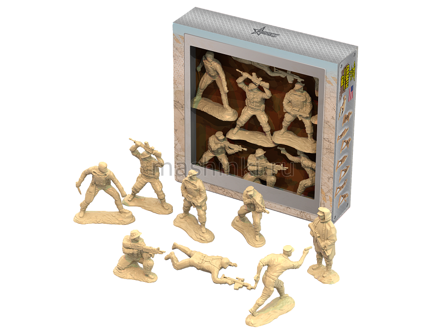 НОРДПЛАСТ 1/17 Солдаты США Морские котики 8 шт песочный подарочная коробка