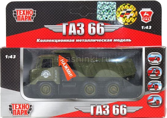 ТЕХНОПАРК 1/43 ГАЗ-66 самосвал Военстрой (свет, звук) хаки