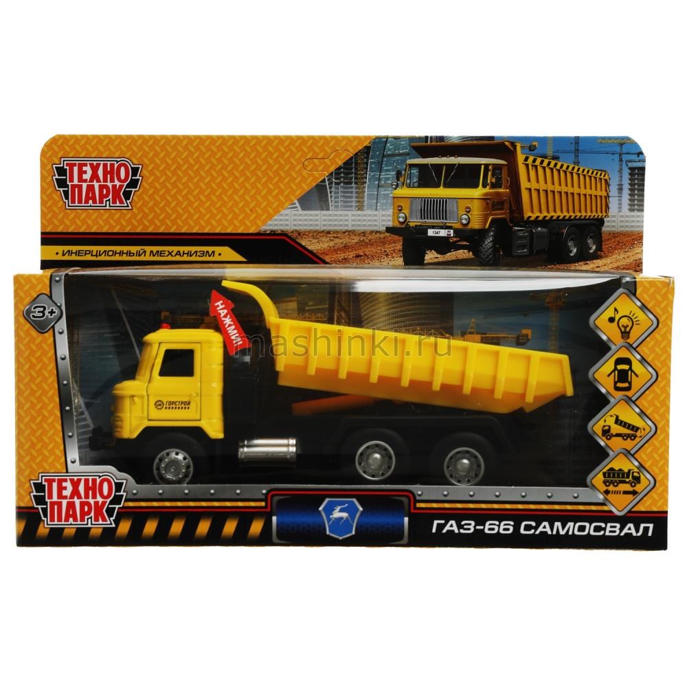 ТЕХНОПАРК ГАЗ-66 самосвал 18 см (свет, звук) желтый