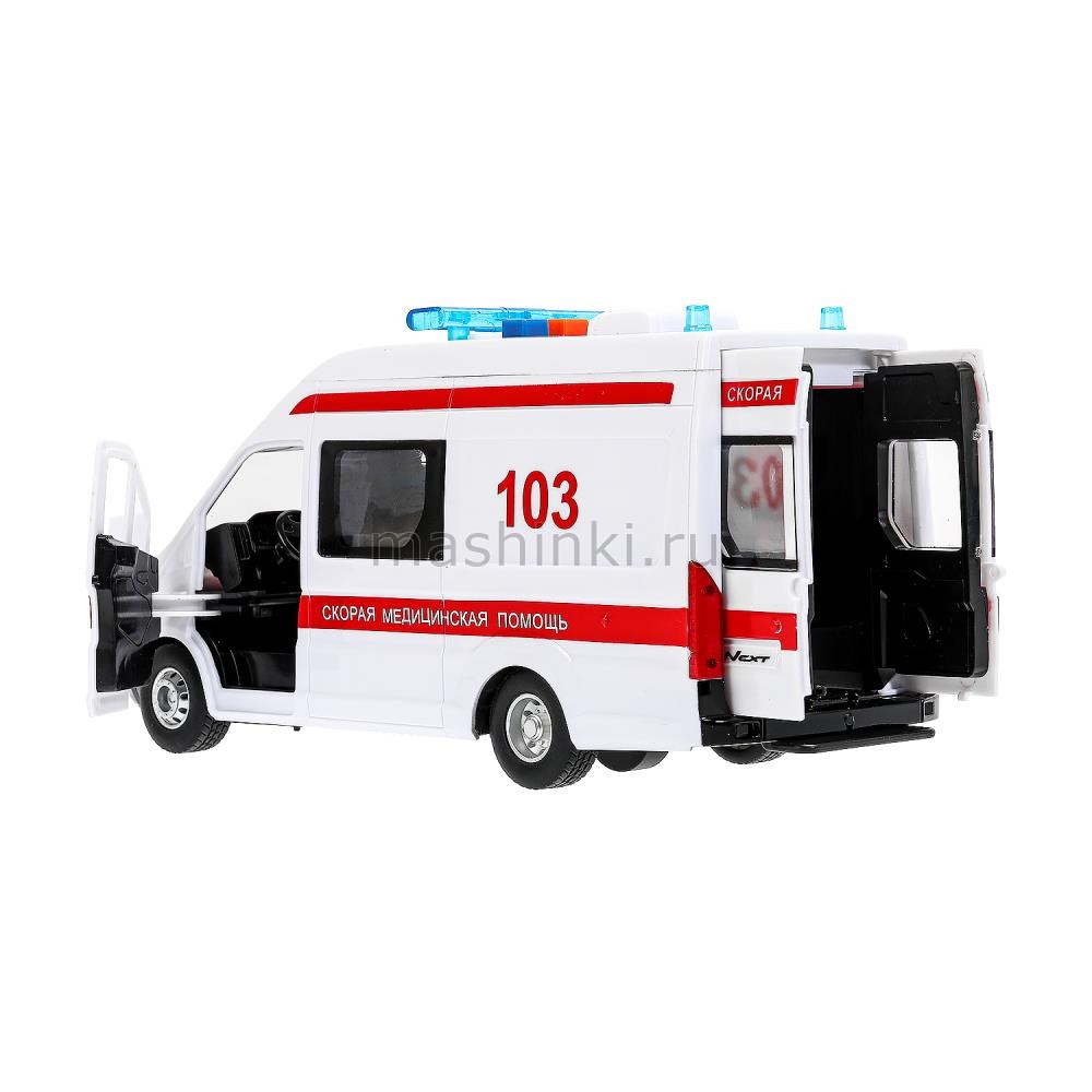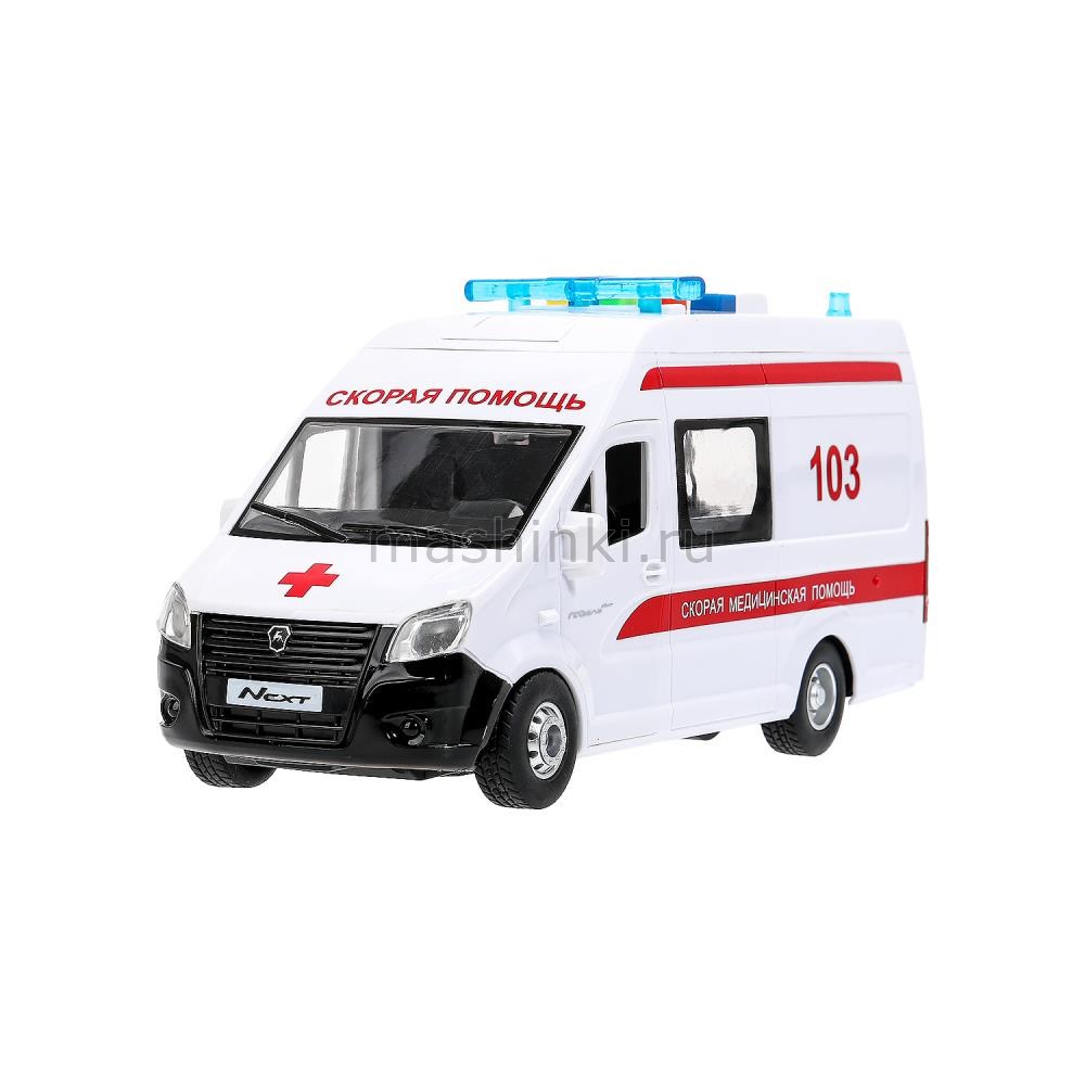 ТЕХНОПАРК ГАЗЕЛЬ Next Скорая помощь 22,5 см (свет. звук) пластм. белый откр. коробка