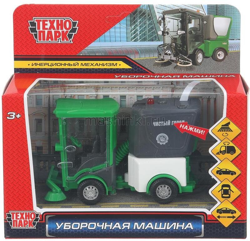 ТЕХНОПАРК Уборочная машина 11 см (свет, звук, двери) зеленый
