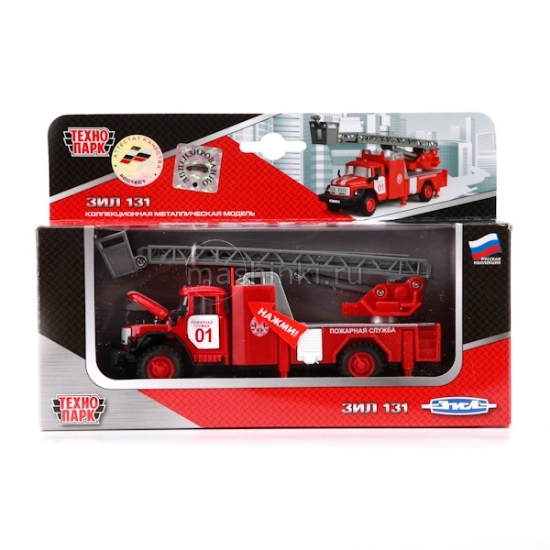 ТЕХНОПАРК ЗИЛ-131 пожарная лестница 14 см (свет, звук) инерц. красный