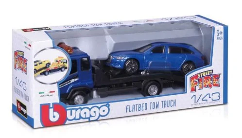 BBURAGO 1/43 Эвакуатор + машина STR Fire Flatbed Transport blue/синий