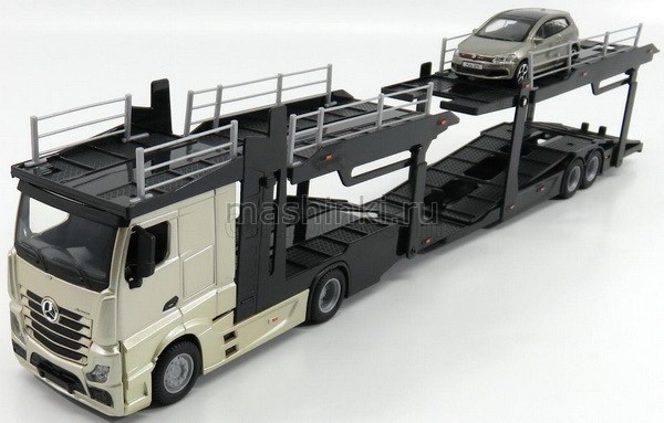 BBURAGO 1/43 STR. FIRE Multicar Carrier - MERCEDES-BENZ Actros Cab w/front trailer + VW Polo GTI Mark 5