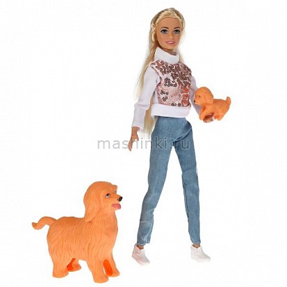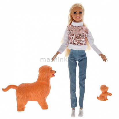 Кукла СОФИЯ в машине 29 см руки, ноги сгиб. (магнитные собака и щенок)