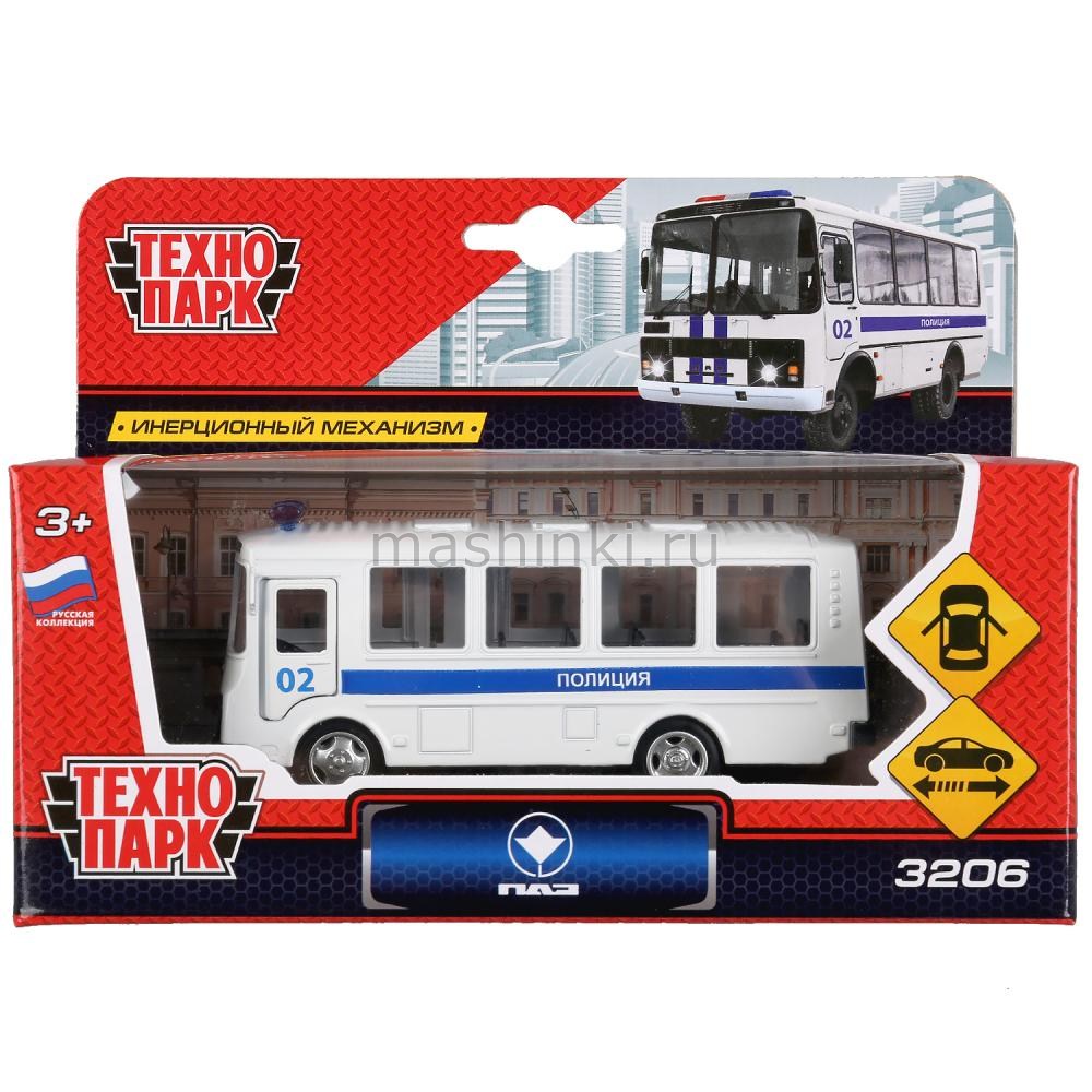 ТЕХНОПАРК Автобус ПАZ-3206 Полиция 11,5 см металл. белый