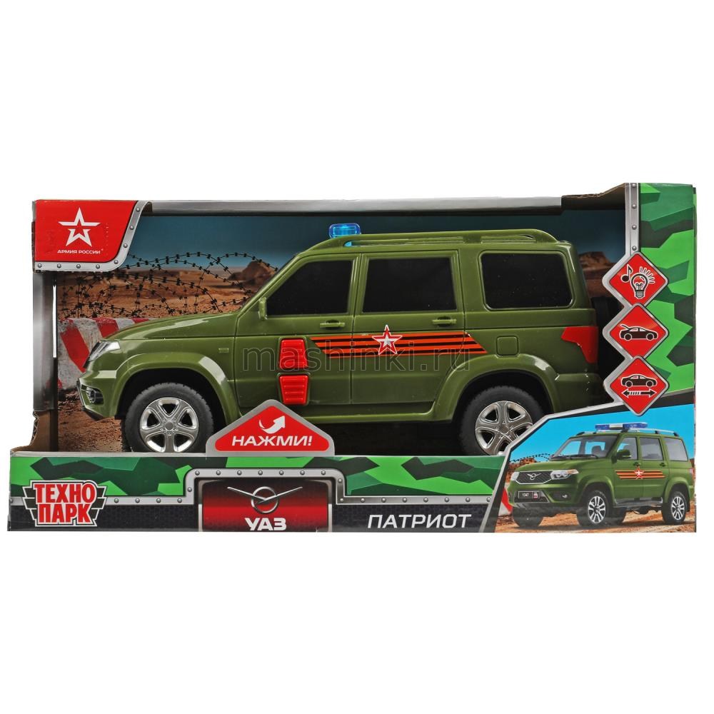 ТЕХНОПАРК УАЗ Patriot 22 см (свет, звук) Армия России пластм. хаки откр. коробка