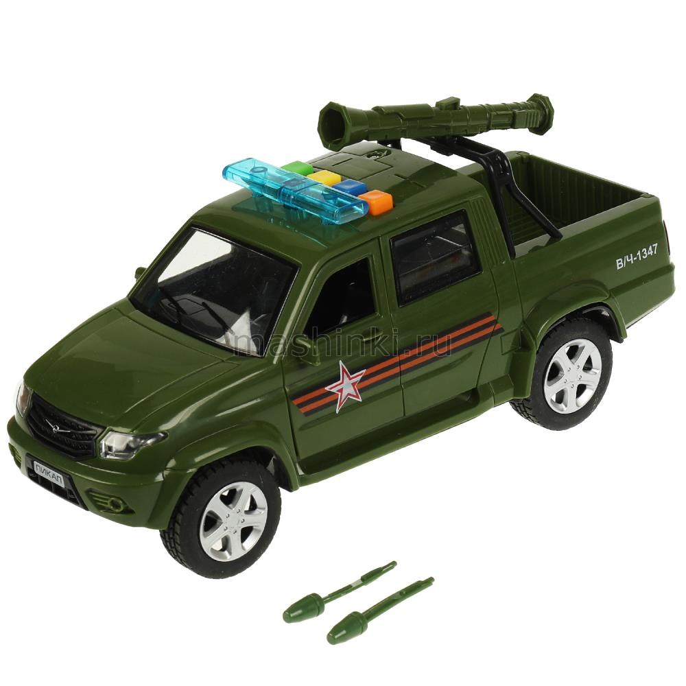 ТЕХНОПАРК УАЗ пикап военный 22 см 4 кнопки (свет, звук, пушка стреляет) пластм. хаки откр. коробка