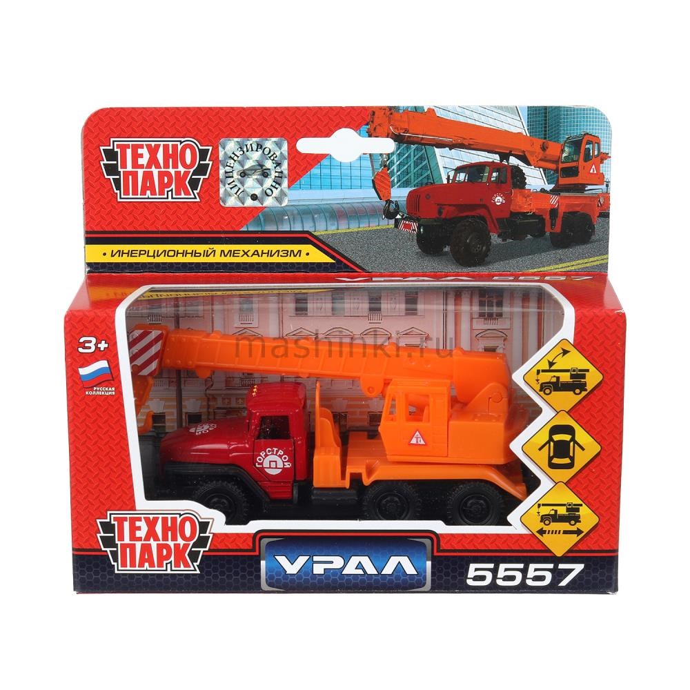 ТЕХНОПАРК УРАЛ-5557 автокран 12 см красно-оранжевый
