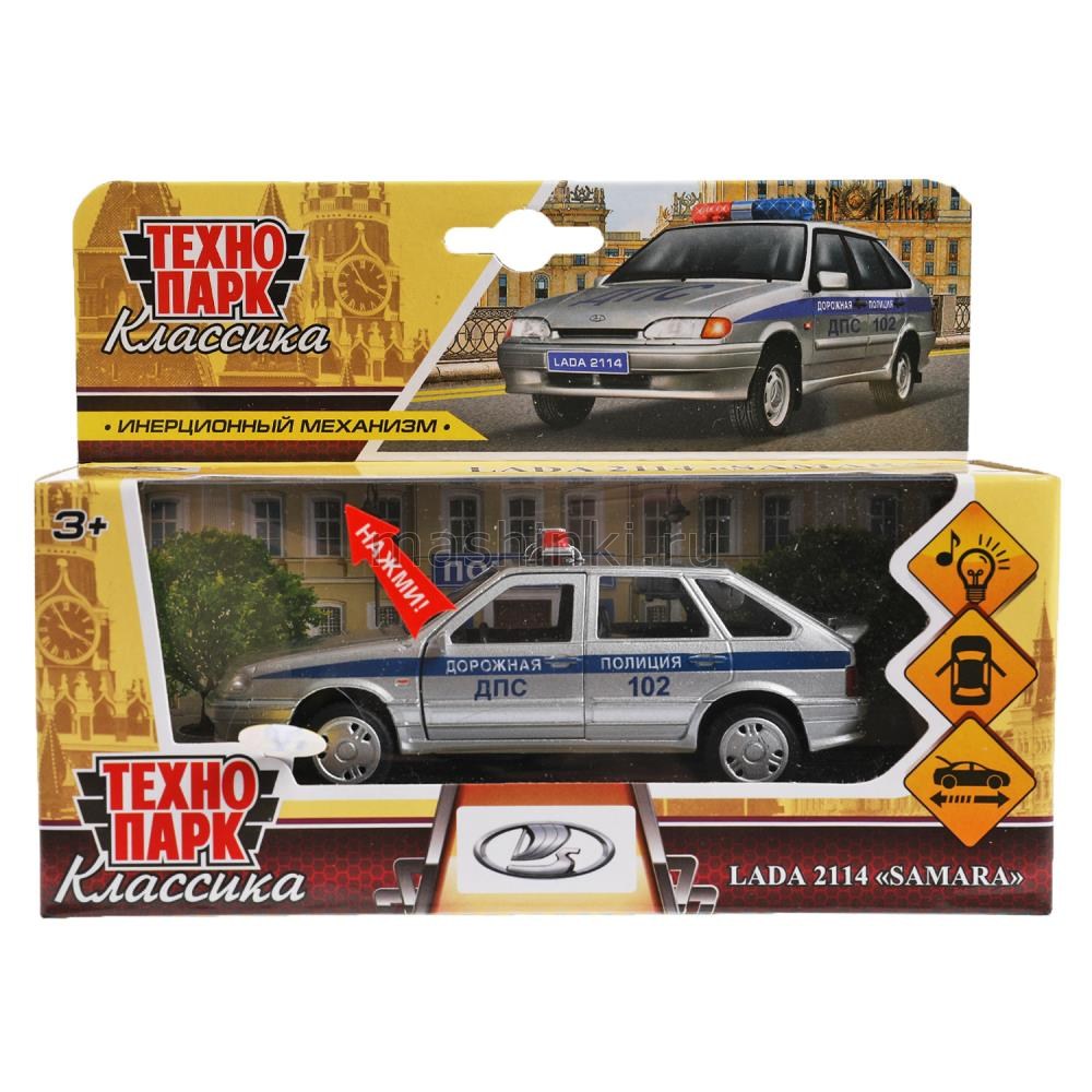 ТЕХНОПАРК ВАЗ-2114 LADA Samara Полиция 12 см (свет, звук) серебристый